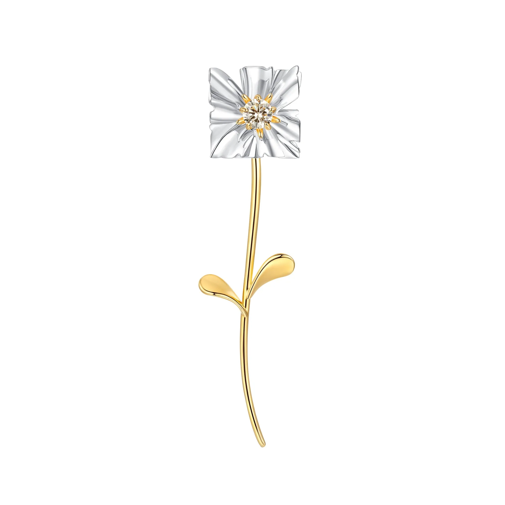Materials: Large: Brass, Plated with 18K gold, Zircon. Small: Silver, Plated with 18K gold, Zircon.